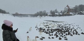 Kėdainiuose Nevėžyje žiemojančiais paukščiais pasirūpinta: kasdien lesinami, prižiūrima eketė