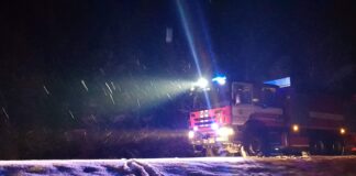 Kėdainių rajone nuo kelio nuslydo ugniagesių transportas, užklimpo ir policija