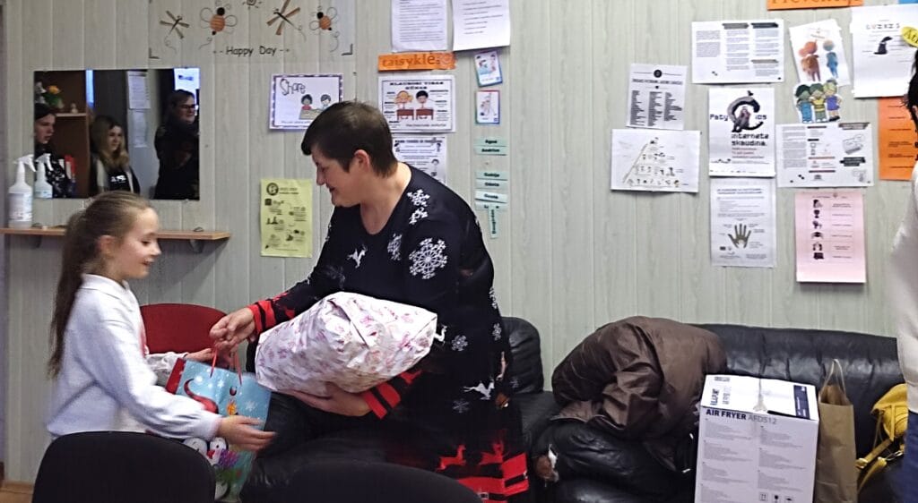 „Nelabai pas mus svečiai lankosi. Dovanas gauname per siuntų tarnybas. Yra dovanų atkeliavę iš Vilniaus ir Druskininkų. Pernai viena buvo ir iš Kėdainių“, – sakė Gudžiūnų dienos centro pedagogė Akvilė Makasejeva ir pedagogo padėjėja Regina Žiupsnienė. Dviem sergančioms sesutėms Justina ir Asta dovanėles nuvežė į namus Vikaičiuose.