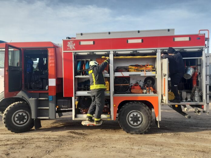 ,,Atvykus ugniagesiams, atvira liepsna degė garažas. Garažas metalinis, 3×3 m dydžio, aplink sukonstruotas medinis karkasas ir apkaltas plastikinėmis dailylentėmis, stogas skardinis. Prie garažo priblokuota malkinė (3×3 m) ir medinė pastogė (6×3 m).