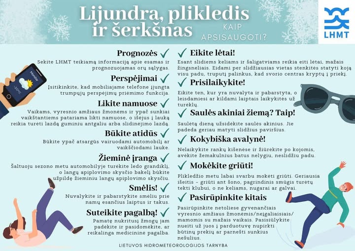 Taip pat primenama, kad esant lijundrai geriau eiti susitelkus į patį ėjimą, o ne žvelgiant į telefoną. Be to, itin svarbu neskubėti, laikyti rankas laisvas, ne kišenėse, kad būtų galima geriau išlaikyti pusiausvyrą.