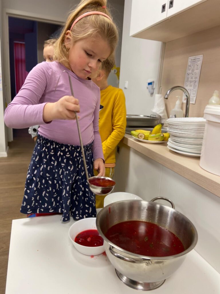 Darželyje populiaru priešpiečius valgyti lauke, vasarą lauke pusryčiaujame. Kiekvienais metais švenčiame košės dieną, tuomet atliekų visiškai nelieka.