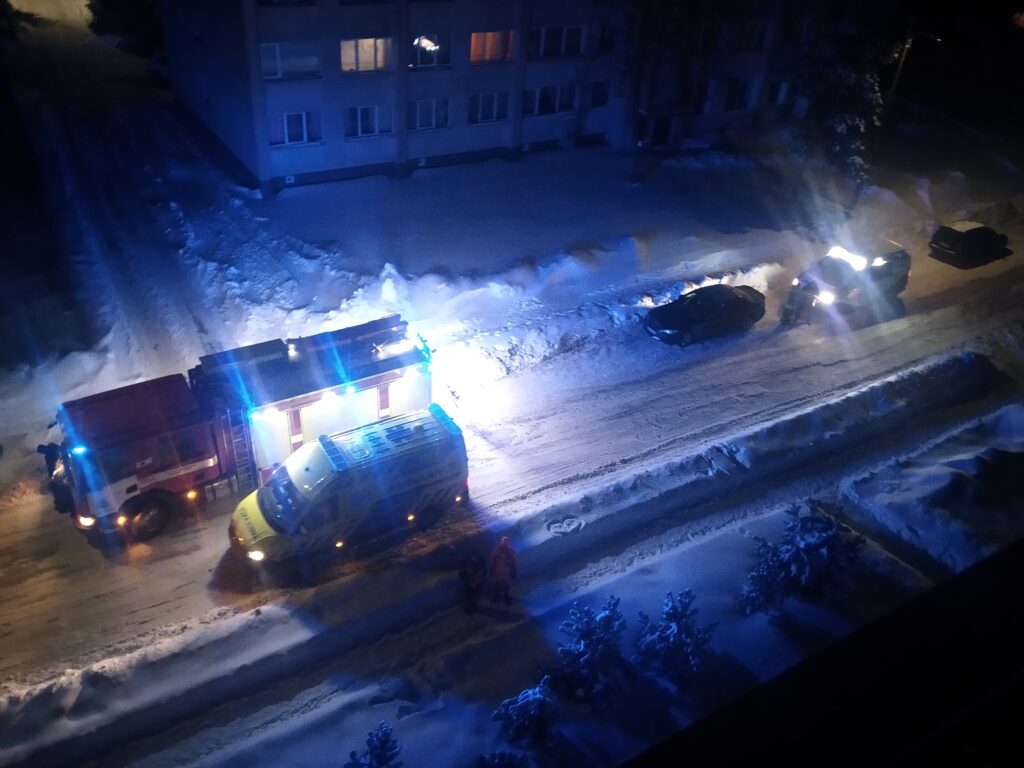 Ankstų vasario 16-osios rytą GMP ekipažas paprašė ugniagesių atvykti į J. Basanavičiaus g., teigdami, kad reikalinga pagalba išnešti pacientą. Atvykę ugniagesiai gelbėtojai padėjo išnešti sunegalavusį vyrą iš buto 3 aukšte ir įkelti į GMP automobilį.