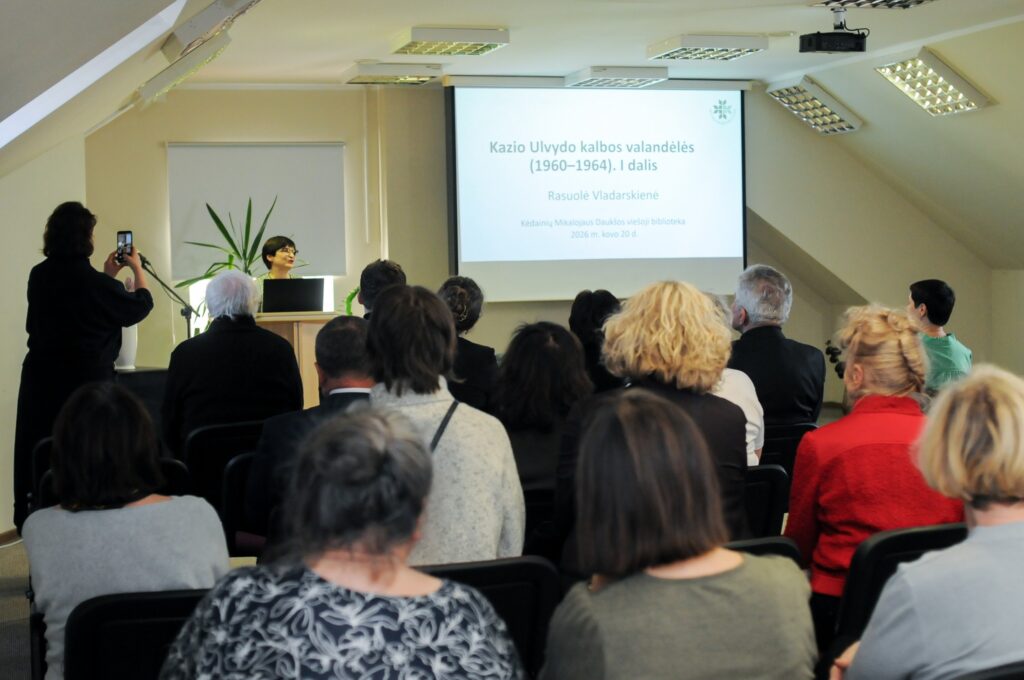 Penktadienį Kėdainiuose buvo pristatyta kalbininkės, mokslininkės doc. dr. Rasuolės Vladarskienės iš Lietuvių kalbos instituto parengta knyga „Kazio Ulvydo kalbos valandėlės. I dalis (1960–1964)“.