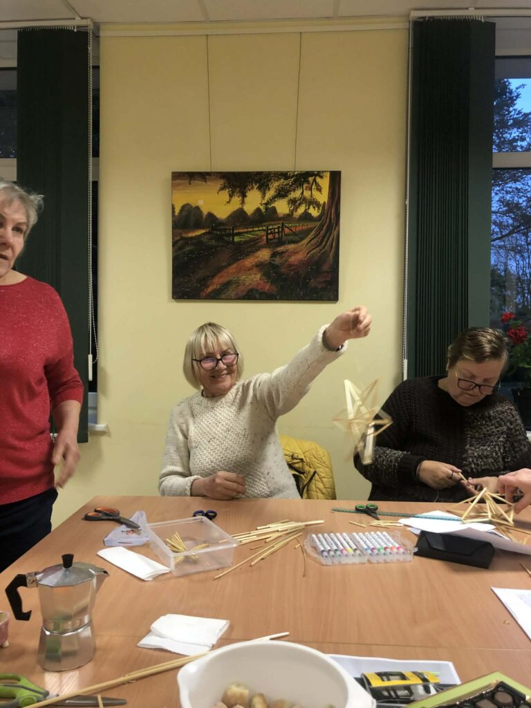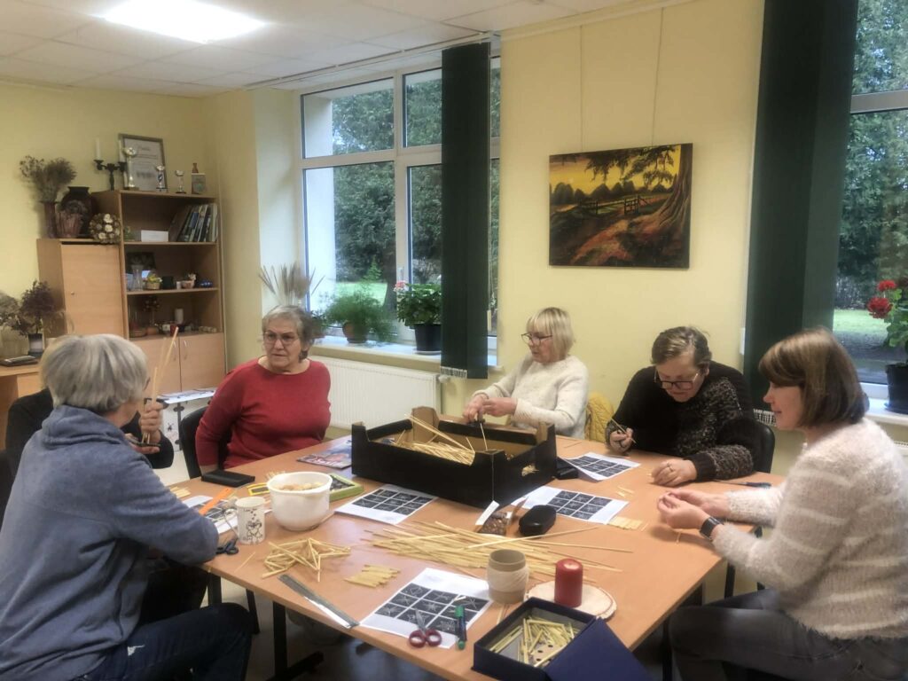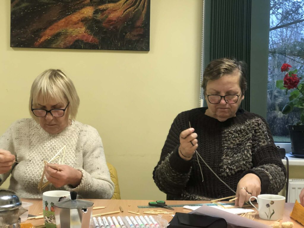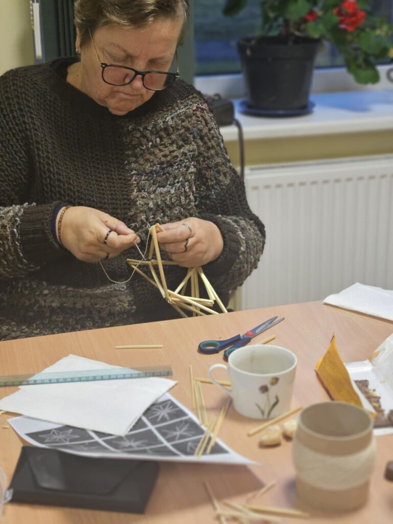 Praėjusią savaitę Pajieslio daugiafunkciame centre vyko edukacinis užsiėmimas „Šiaudiniai papuošimai namams“, kurį vedė Krakių kultūros centro Pajieslio daugiafunkcio centro renginių organizatorė Rita Tamošaitienė. Susirinkusios moterys mokėsi iš šiaudų sukurti kalėdinę žvaigždę.