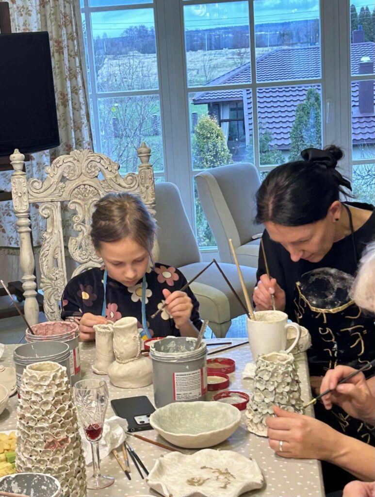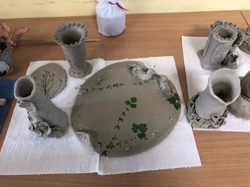 Molio edukacijos dalyvės iš Pajieslio pas keramikę Jurgitą Grigarienę.