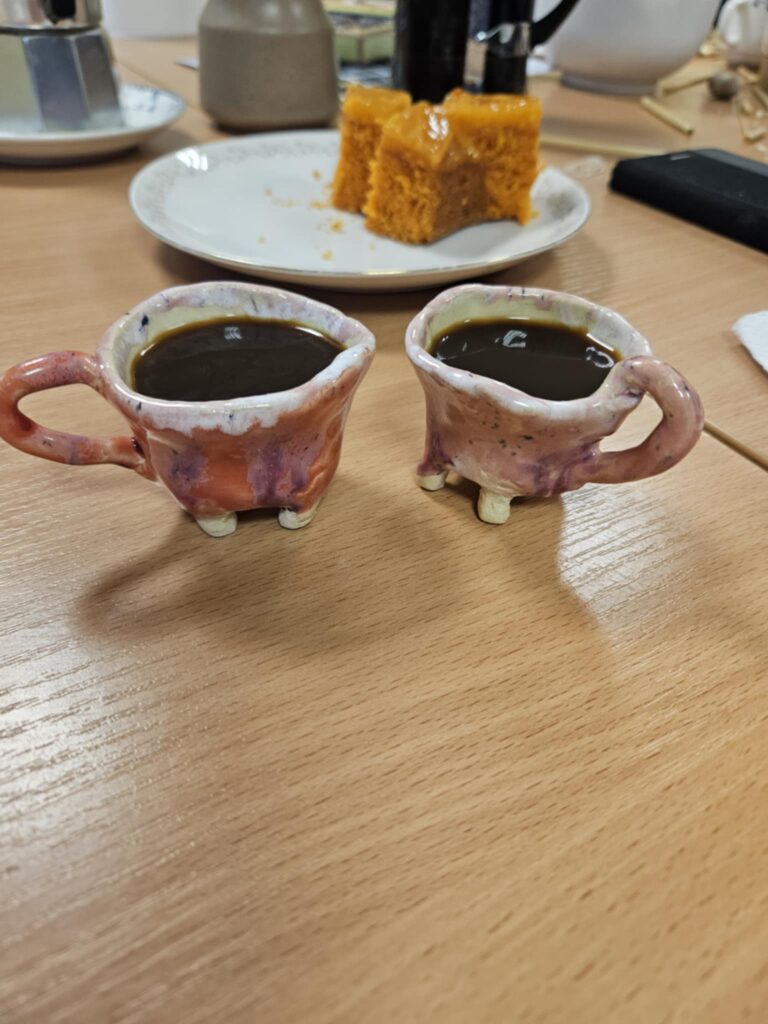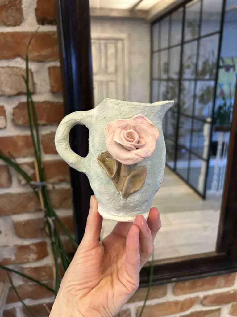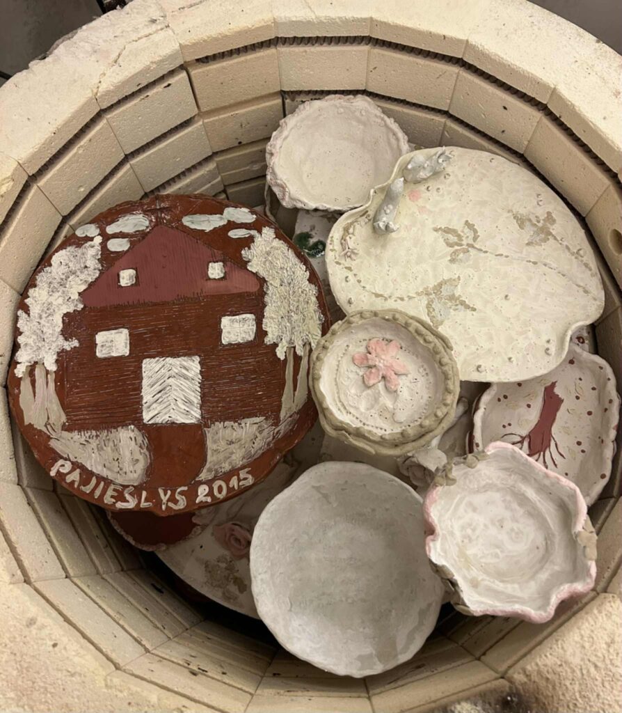 Tikrasis molio grožis atsiskleidė tada, kai glazūruoti darbai buvo dar kartą išdegti krosnyje. Vienos gamino puodelius kavai, kitos – vazeles, saldainines, žvakides. Buvo sukurta ir viena bendra vaza su gėlytėmis bendruomenei. Moterys džiaugėsi savo keramikos dirbiniais – kai kurios netgi išbandė naujus puodelius paragauti kavos. „Iš tiesų kava buvo net skanesnė“, – pasakojo edukacijos dalyvės.