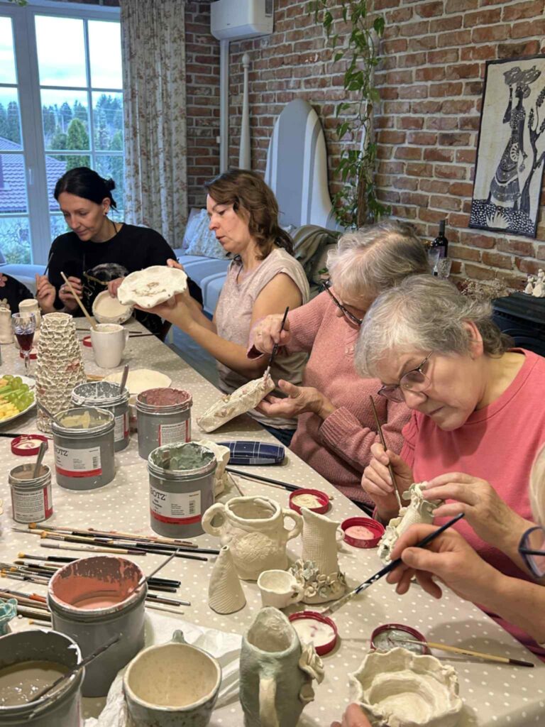 Pajieslio bendruomenės moterys nuoširdžiai dėkoja Jurgitai Grigarienei už visapusiškai naudingas keramikos pamokas. O tos, kurios šįkart dalyvauti negalėjo, neslėpė pavydo ir prašo kitais metais vėl surengti tokią edukaciją.