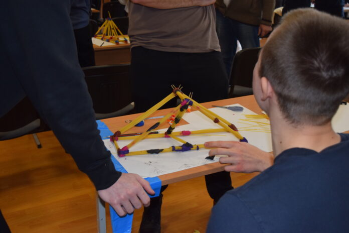 Tik spagečiai ir plastilinas – tokių darbo priemonių prireikė net 17 mokinių komandų, Kėdainių „Atžalyno“ gimnazijoje dalyvavusių nacionaliniame čempionate „Makaronų tiltai 2025“. Renginio tikslas – iš makaronų ir plastilino pastatyti kuo didesnį svorį išlaikantį tiltą.