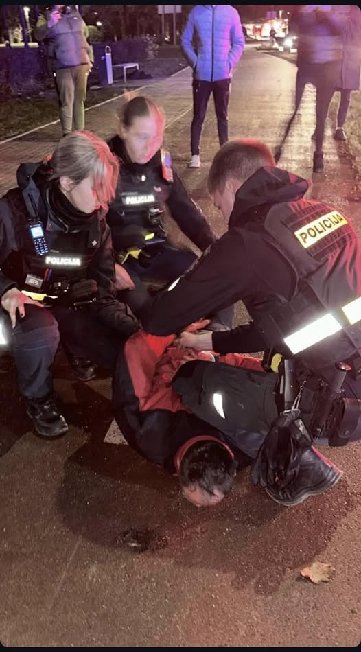 Policijos paskelbtoje nuotraukoje matyti ant žemės gulintis vaikinas tamsiais plaukais, jį laiko trys policijos pareigūnai. Internete plinta įrašai, kaip įvykio vietoje susirinkę žmonės ploja, o surakintas įtariamasis sodinamas į policijos mašiną.