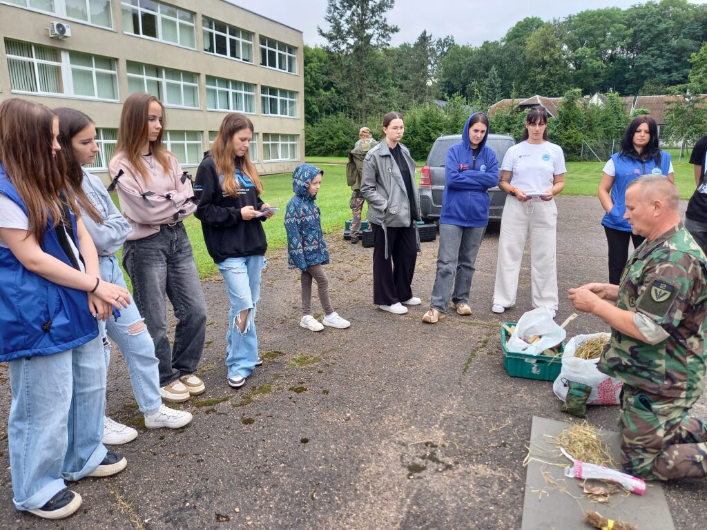 Jaunuoliai sužinojo, kur Kėdainiuose yra artimiausias kolektyvinės apsaugos statinys ir kokią reikšmę jis turi ekstremalių situacijų metu. Jie mokėsi susikrauti išvykimo krepšį, praktiškai išbandė, kaip užkurti laužą be degtukų, susipažino su šaudymo pagrindais – nuo saugaus ginklo laikymo iki taiklaus šūvio.