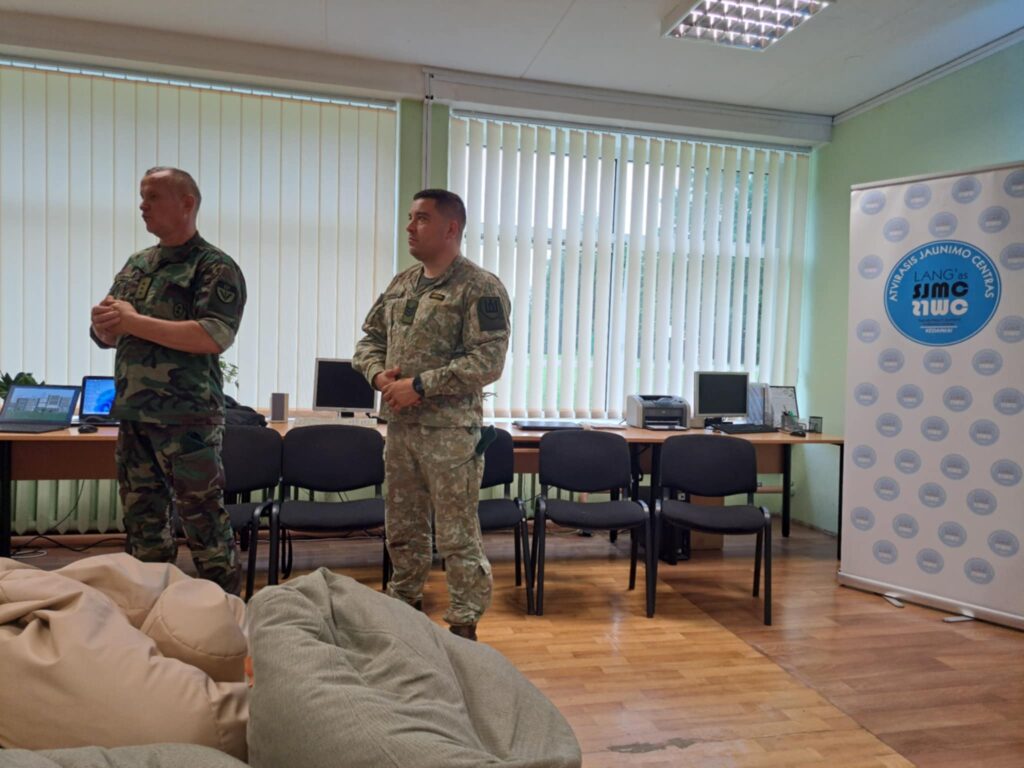 Kėdainių SJMC Atvirajame jaunimo centre „Langas“ apsilankė Kėdainių Povilo Lukšio 205-osios kuopos vadas Arvydas Ašmontas ir jaunųjų šaulių būrelio vadovas Dmitrijus Tekunovas. Į susitikimą rinkosi ne tik AJC jaunimas, bet ir Pelėdnagių Atvirosios jaunimo erdvės komanda.