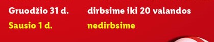 Skelbiama, kad sausio 1 d. „LP Express“ kurjeriai nedirbs, taip pat sausio 1d. šalyje neveiks visi pašto skyriai.