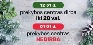 Naujųjų metų išvakarėse, gruodžio 31 d., prekybos tinklo parduotuvės visoje šalyje dirbs iki 21 val.