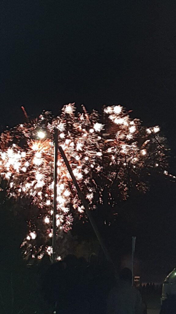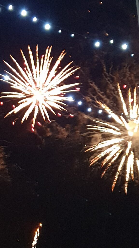 Kalėdų eglutės įžiebimo proga dangų nušvietė įspūdingi fejerverkai, kuriuos seniūnijai padovanojo rėmėjai.