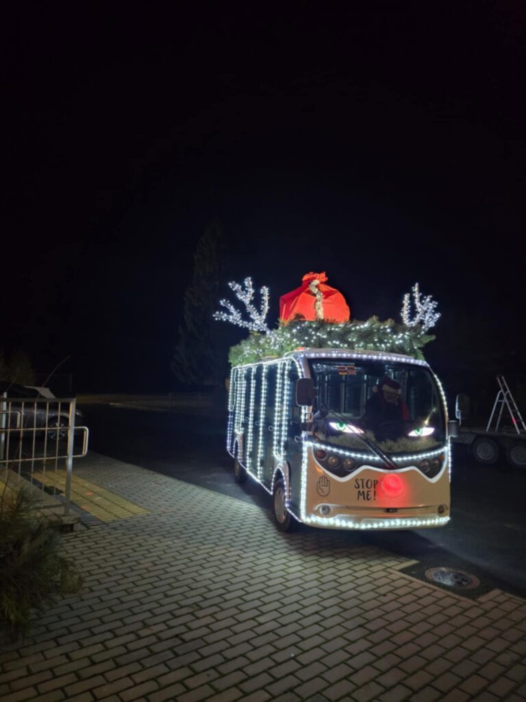 Tądien po Pavermenio gyvenvietę riedėjo specialus šventinis Kalėdomobilis, atvykęs iš Birštono.