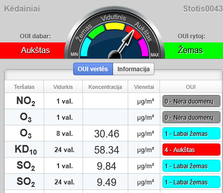 KD10 ribinė vertė yra 50 µg/m³. Šiandien Kėdainiuose kietųjų dalelių ore – 58,34 µg/m³.