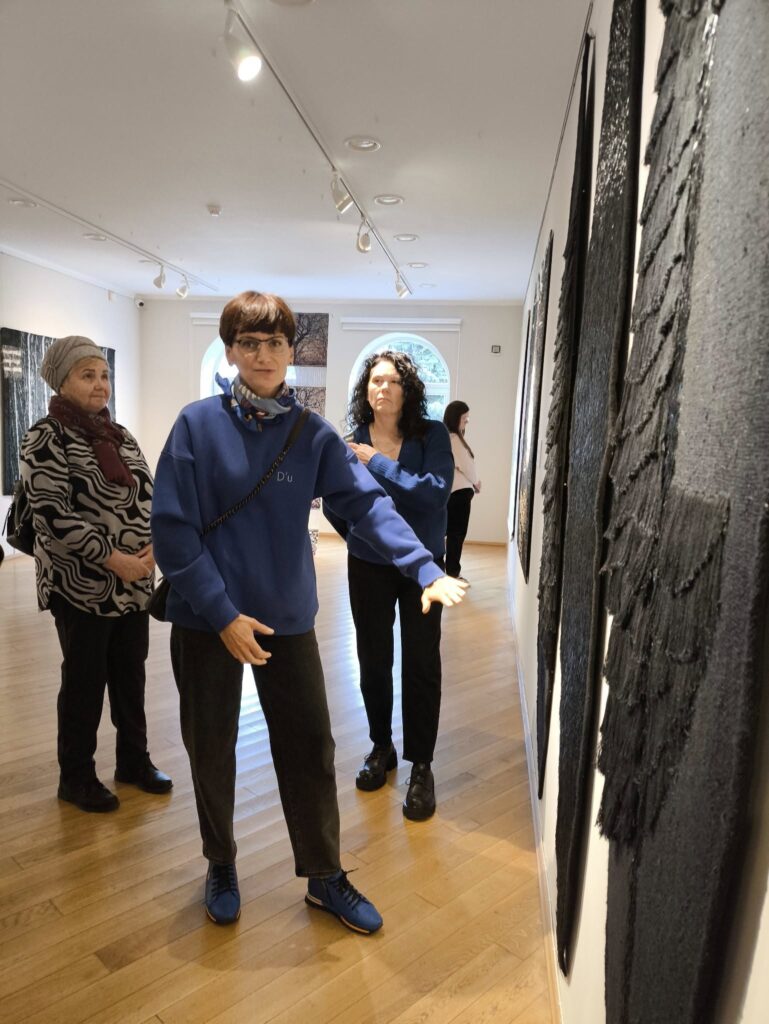 „Turų metu keliaujame po visas galerijos erdves, kur eksponuojami kūriniai. Bendraujame – ne tik aš viena kalbu, bet įtraukiu ir žiūrovus, kad galėtume tyrinėti, klausti, ieškoti atsakymų ir dalytis įžvalgomis. Kiekvienas turas būna kitoks, nes susirenka skirtingi žmonės, kurie skirtingai mato kūrinius ir pastebi skirtingas detales“, – pasakojo pašnekovė.