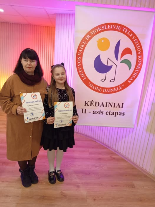 Kėdainių „Ryto” progimnazijos mokinė Faustė Dirsytė su mokytoja Žydre Vancevičiene (Kėdainių „Ryto” progimnazijos nuotr.).