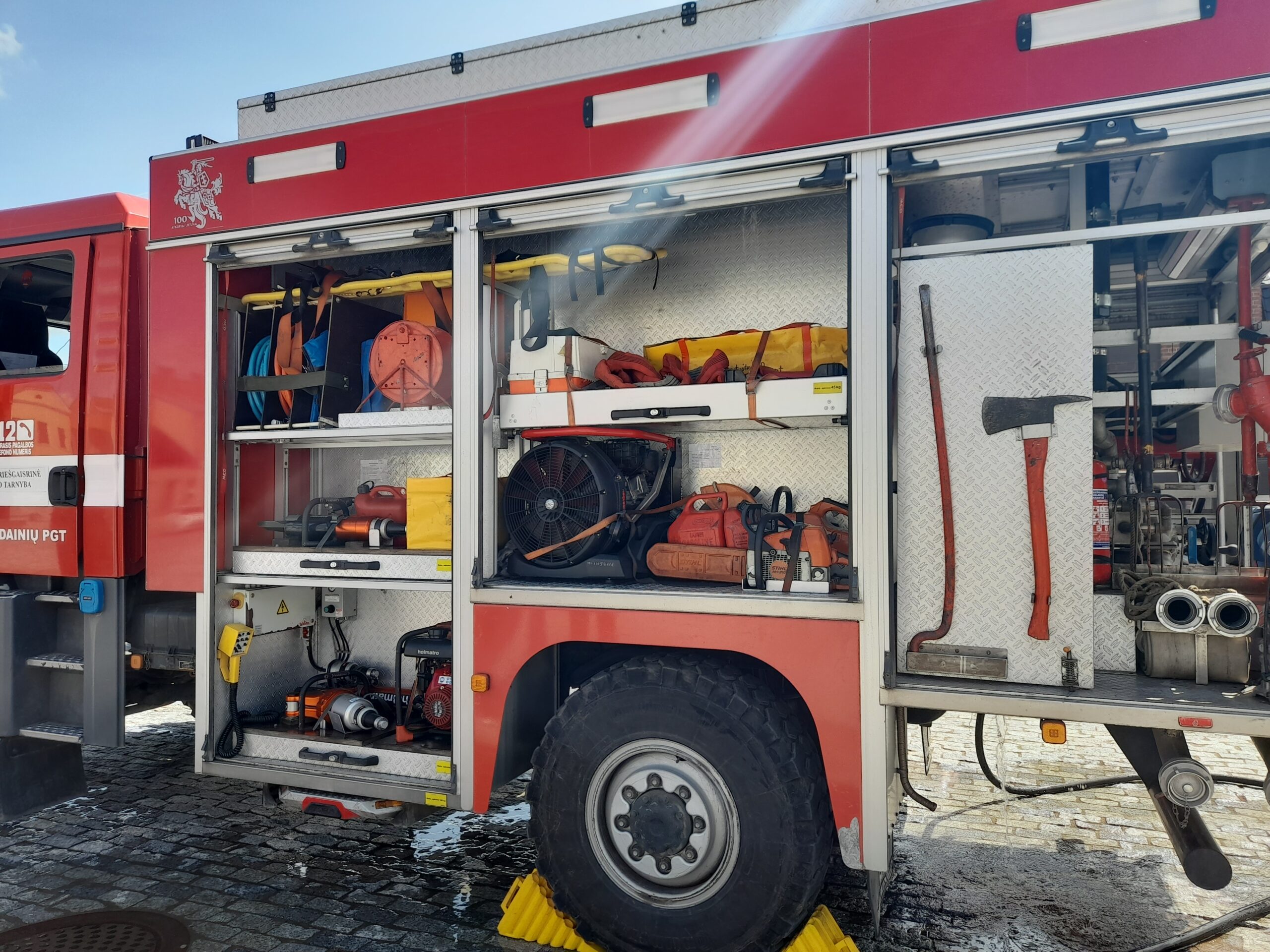 Vilkike MAN rastas vyras, kuriam buvo prispaustos kojos. Ugniagesiai gelbėtojai, panaudodami hidraulinę įrangą, nukentėjusį žmogų išlaisvino (11.22 val.) ir perdavė medikams. Nukentėjusysis išvežtas į gydymo įstaigą Kaune.