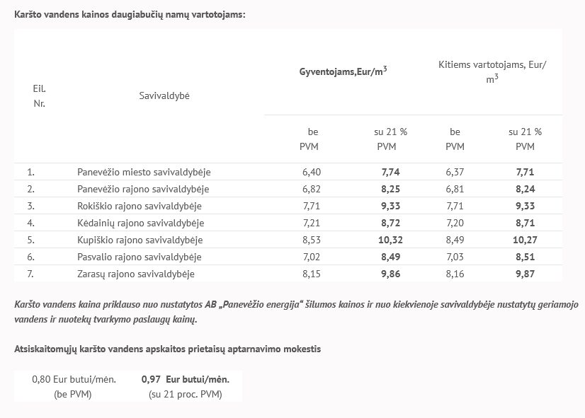 Už karštą vandenį kėdainiečiai mokės 8,72 Eur/m3. Ir tai nėra mažiausia kaina tarp kitų savivaldybių – AB „Panevėžio energijos” vartotojų.