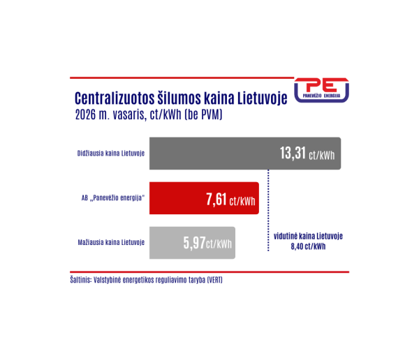Vasario mėnesį AB „Panevėžio energija“ tiekiamos šilumos kaina sudaro 7,61 ct/kWh. Visi vartotojai mokės 9,21 ct/kWh (su 21 proc. PVM), skelbia šilumos tiekėjas.