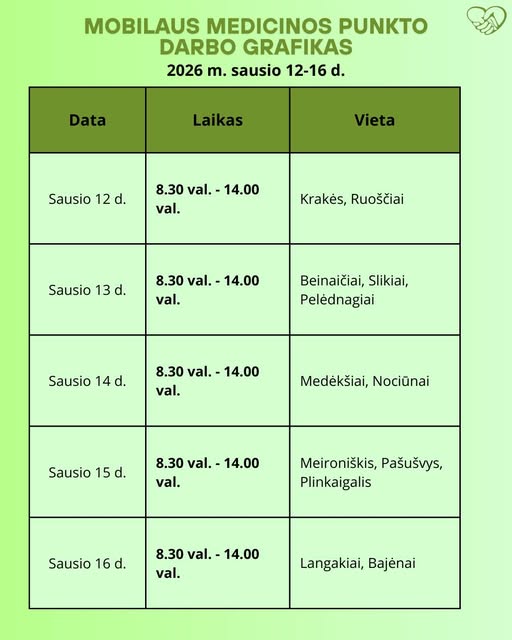 Kitos savaitės mobilaus medicinos punkto darbo grafikas Kėdainių rajone