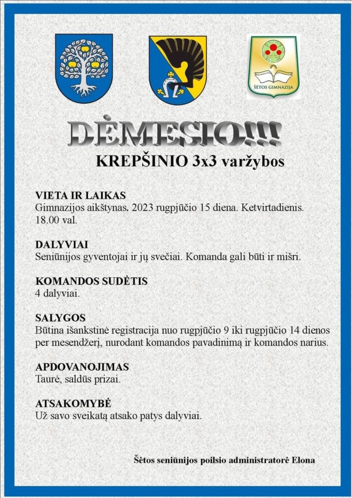 Šiandien, ketvirtadienį, 12 val. Šėtos Švč. Trejybės bažnyčioje – Žolinės iškilmės. Ryte Kaplių tvenkinyje varžėsi žvejai, o po pietų Šėtos gimnazijos aikštyne – 3X3 krepšinio turnyras.