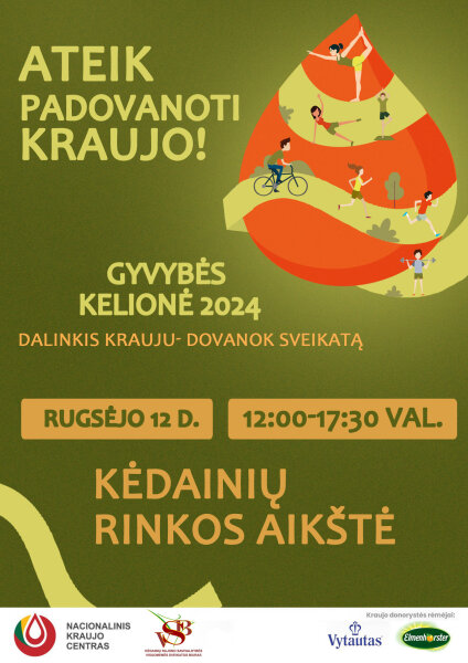 VšĮ Nacionalinis kraujo centras rugsėjo 12 d. kviečia padovanoti kraujo. NKC kraujobusas nuo 12 iki 17:30 val. kėdainiečių lauks Kėdainių Didžiojoje Rinkoje.