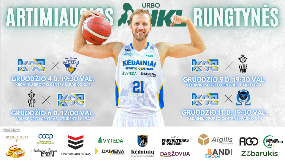 Kitas URBO-NKL pirmenybių rungtynes KSC žais namie ketvirtadienį, gruodžio 4 d.