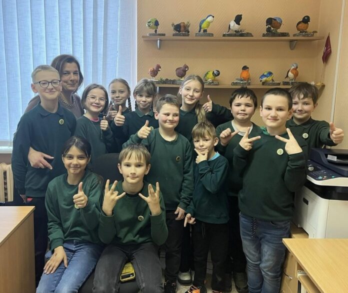 Pavasarinius paukštukus nutupdė Surviliškio Vinco Svirskio pagrindinės mokyklos pradinukai su savo mokytoja Aušra Kuliešiene.