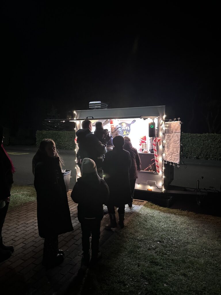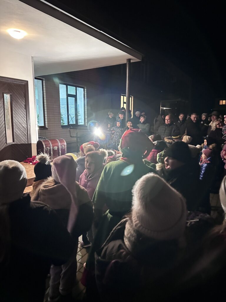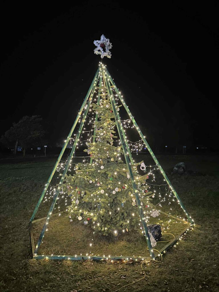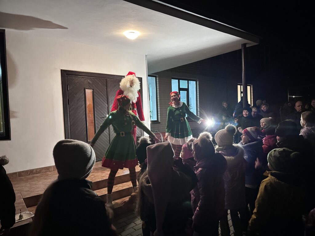 Vėliau visi patraukė prie Nociūnų parduotuvės „Aibė“, kur buvo įžiebta Kalėdų eglutė. Eglės įžiebimo proga bendruomenė vaišinosi saldumynais, gėrė kakavą ir arbatą su sausainiais.