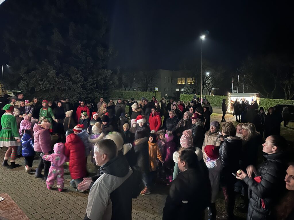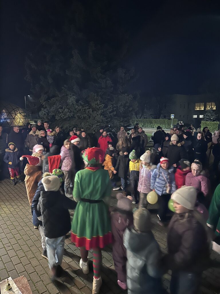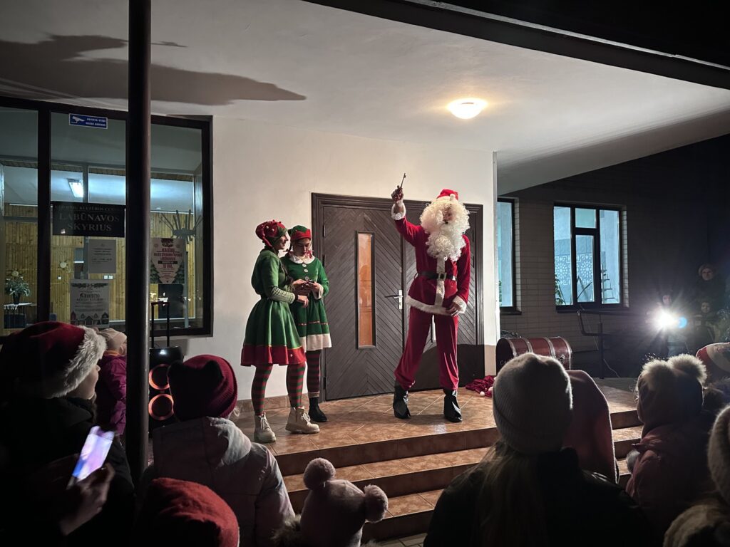 Į eglutės įžiebimo renginį susirinko gausus būrys vaikų ir suaugusiųjų. Kalėdų senelis su Elfais dovanojo linksmą programą.