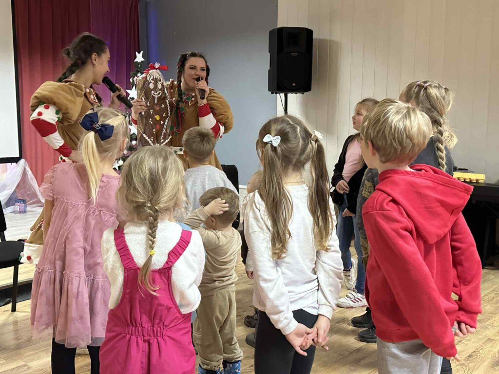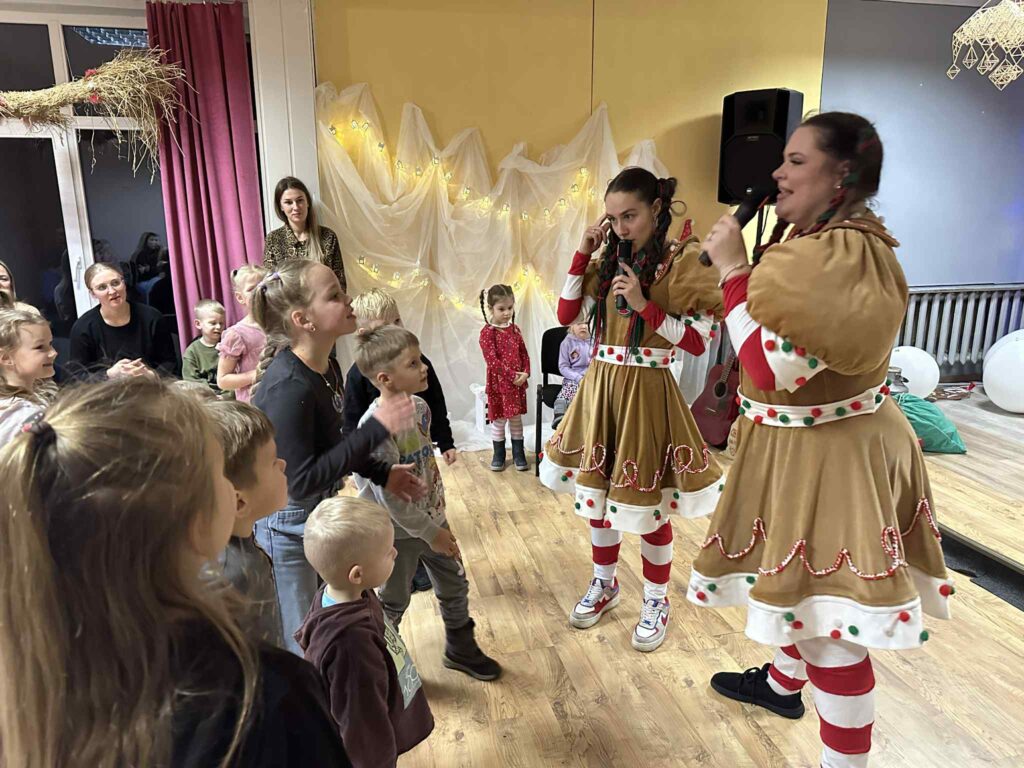 Šia proga visi susirinko Kėdainių kultūros centro Nociūnų skyriaus salėje, kur mažųjų laukė kalėdinė programa „Meduolių fabrikėlis“. Ją vedė dvi profesionalios personažės – Meduoliukės.