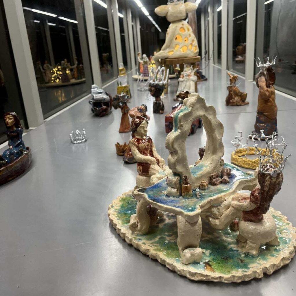 Keramikinės figūros, nameliai, karūnos, gyvūnai ir abstrakčios formos kuria savitas mažąsias karalystes – pasaulius, kuriuose gyvena tyla, saugumas ir paslaptis.