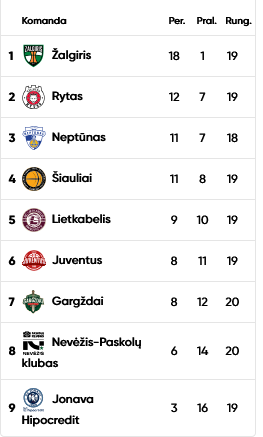 „Gargždai“: Justinas Turneris 20, Nojus Mineikis 19, Jalonas Pipkinsas 16, Paulius Petrilevičius 12, Deividas Gailius 6, Martinas Meieris 6.