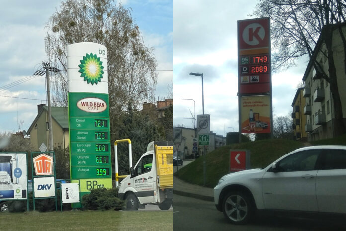 Kol Lietuvoje kuro kainos degalinėse dar šiurpina vairuotojus, kaimyninėje Lenkijoje jos – žymiai mažesnės. Tai iliustruoja šįryt kėdainiečio atsiųsta nuotrauka, kurioje Lenkijos degalinėje šįryt užfiksuotos kainos: 1 l dyzelino – 1,70 Eur (7,23 Lenkijos zloto), 1 l benzino – 1,43 (6,08 PLN) ir 1,56 Eur (6,61 PLN).