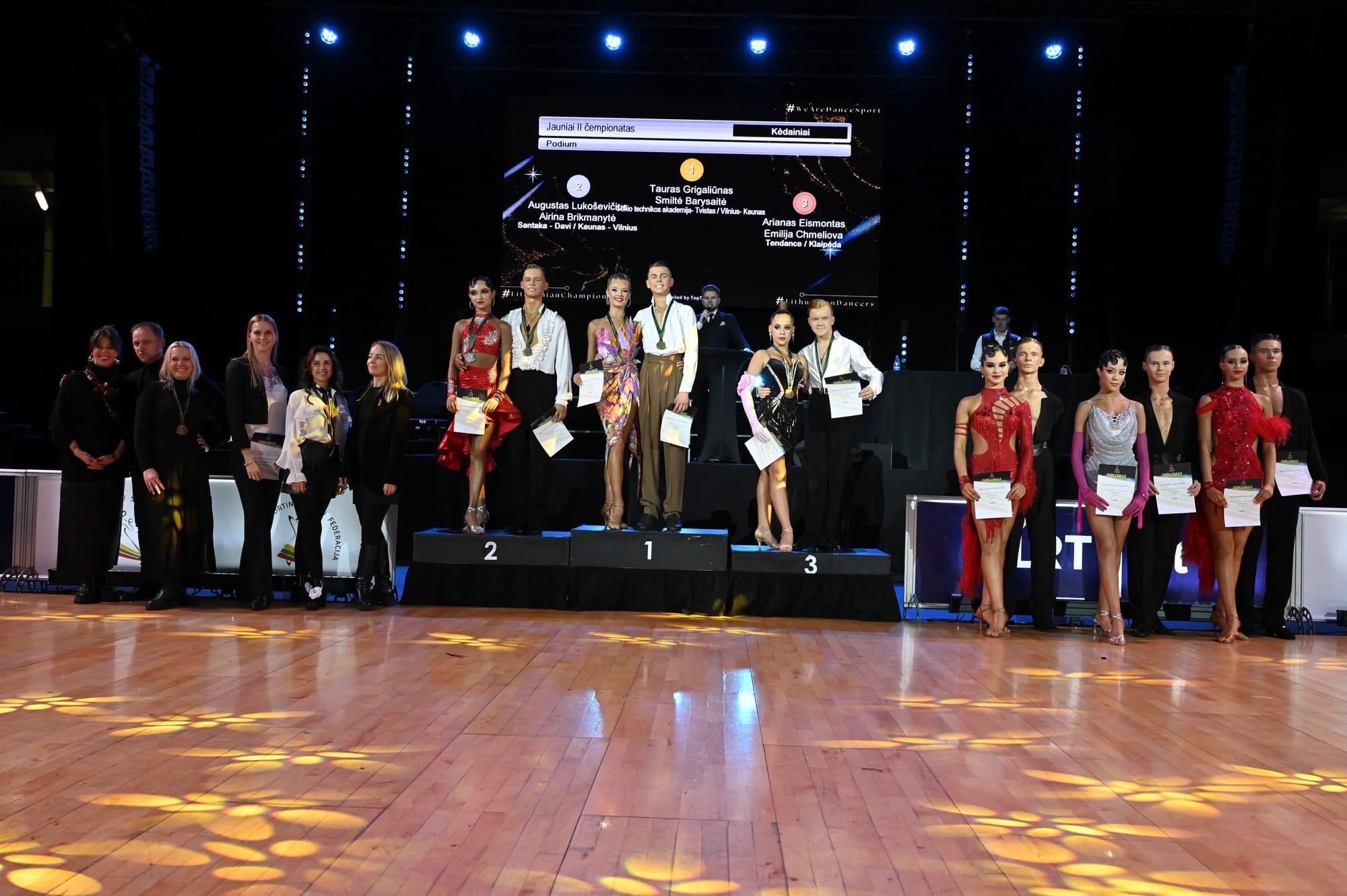 Tuo tarpu Dmytro Zruynovaniy ir Vestinai Remeikaitei iš Kauno klubo „Danza M“ atiteko vicečempionų titulas ir sidabro medaliai, o bronza džiaugėsi taip pat kauniečiai – klubų „Toro“ ir „Kaspinas“ šokėjai Dovydas Li ir Rimantė Krupavičiūtė.