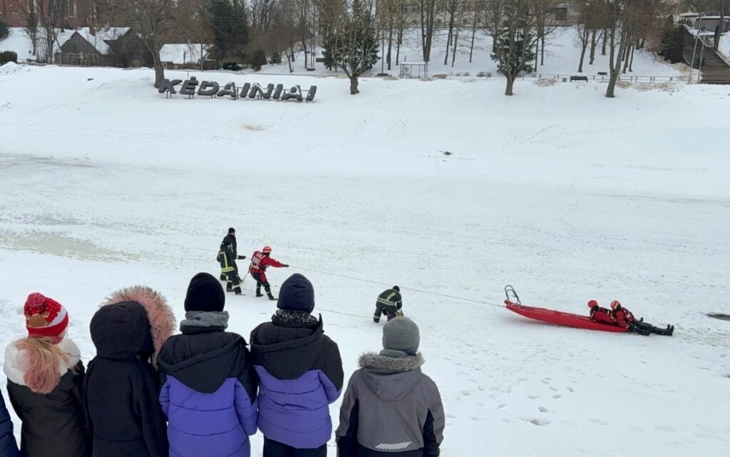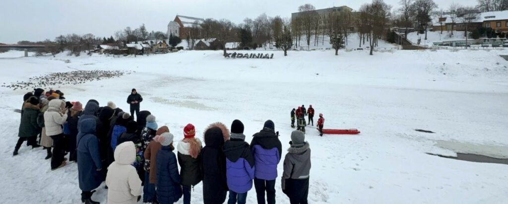 Šiandien Kėdainių priešgaisrinės gelbėjimo tarnybos (PGT) ugniagesiai gelbėtojai rytą pradėjo neįprastai – sukvietė Senamiesčio progimnazijos moksleivius prie Nevėžio, kad papasakotų ir parodytų, kokie pavojai tyko ant upės ledo, kuris, beje, besitraukiant žiemai ir šylant orams, sparčiai keičia savo struktūrą ir kelia rimtą grėsmę.