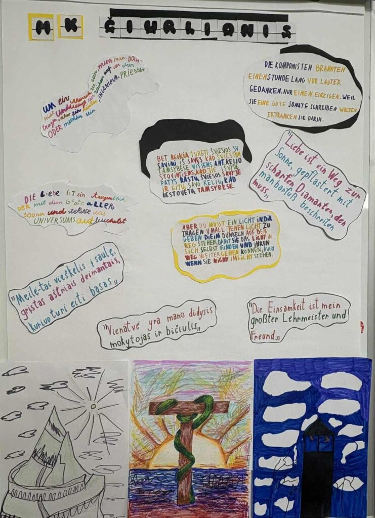 Vokiečių kalbos mokytojos Ramunės Augustinavičienės mokiniai pamokoje parengė iliustruotą plakatą, į kurį vokiškai užrašė dešimt gražiausių Čiurlionio minčių apie meilę, gyvenimą ir muziką.