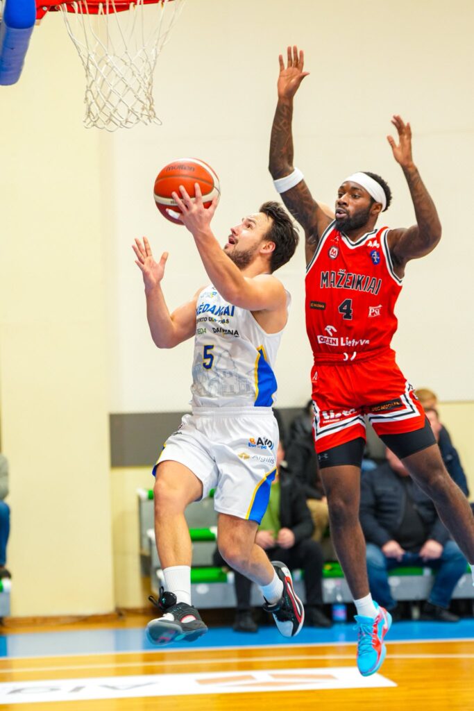Roko Ūzo, Medo Kuprijanovo ir Lauryno Danieliaus trijulės vedamas Kėdainių sporto centras (11-1) išlaiko lyderių poziciją „URBO-NKL“ sezone. Gedimino Butkaus vyrai namie 93:80 (20:17, 27:30, 23:19, 23:14) įrodė pranašumą prieš Mažeikių „M Basket“ (6-6) ir laimėjo devintąkart paeiliui.