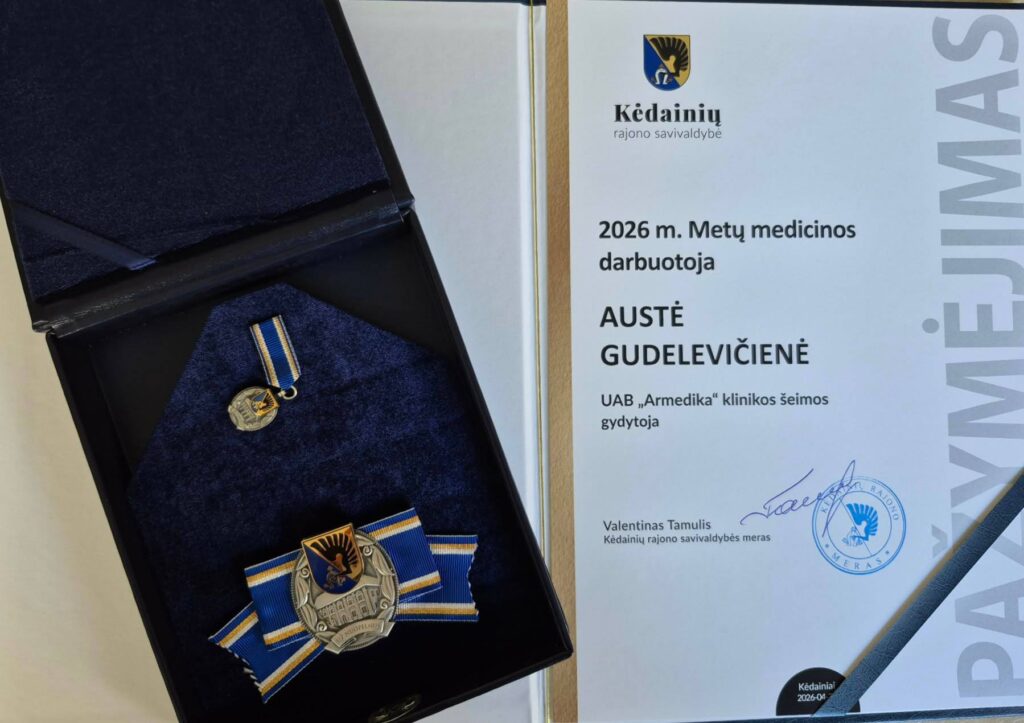 Šis garbingas apdovanojimas – sidabro ženklas „Už nuopelnus” ir piniginė premija – už išskirtinį atsidavimą profesijai bei reikšmingą indėlį į sveikatos priežiūros sritį skirtas Austei Gudelevičienei, UAB „Armedika“ klinikos šeimos gydytojai.