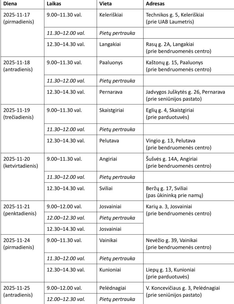 Kėdainių r. savivaldybėje 2025 m. lapkričio 17 – gruodžio 17 dienomis