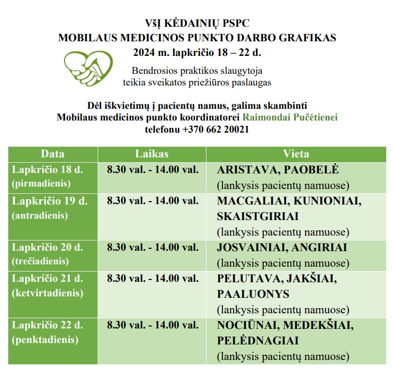 PradžiaKraštiečiams aktualuMobilus medicinos punktas kitą savaitę pacientus rajone lankysKraštiečiams aktualuPravartu žinotiMobilus medicinos punktas kitą savaitę pacientus rajone lankys Kėdainių mugės inf.-2024/11/17FacebookEmail KITOS NAUJIENOS HoroskopasSpalio 28-oji: dienos kaleidoskopas LaisvalaikisKur eiti?.. (Renginiai Kėdainių mieste ir rajone) Kraštiečiams aktualuSpalis baigsis lietingais ir vėjuotais orais Taip pat skaitykite