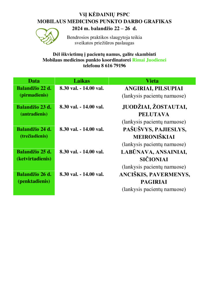 PradžiaKraštiečiams aktualuMobilus medicinos punktas kitą savaitę pas pacientus rajone važiuosKraštiečiams aktualuPravartu žinotiMobilus medicinos punktas kitą savaitę pas pacientus rajone važiuos Kėdainių mugės inf.-2024/04/21FacebookEmail KITOS NAUJIENOS HoroskopasVasario 14-oji: dienos kaleidoskopas EismasEismą Kėdainių miesto gatvėse sunkina ne tik sniegas Krašto žinios,,Meilė veža saugiai“: vaikus į darželį atvežusius tėvus pasitiko policija Taip pat skaitykite