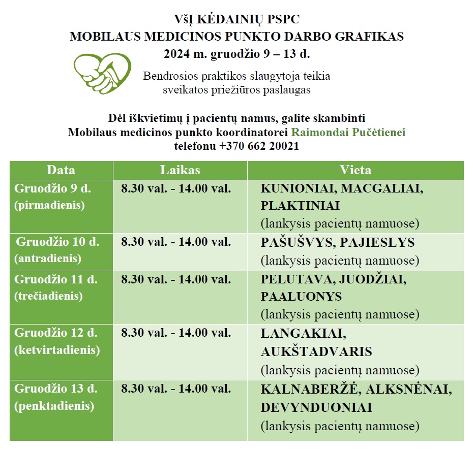 PradžiaKraštiečiams aktualuMobilus medicinos punktas pas rajono pacientus kitą savaitę važiuos (grafikas)Kraštiečiams aktualuPravartu žinotiMobilus medicinos punktas pas rajono pacientus kitą savaitę važiuos (grafikas) Kėdainių mugės inf.-2024/12/15FacebookEmail KITOS NAUJIENOS Būkime sveikiKeliaujant užsienyje susirgote? Šie sprendimai padės išvengti panikos ir bereikalingų išlaidų Pravartu žinotiSukčiai išviliojo daugiau nei 51,4 tūkst. eurų vertės pinigų ir aukso LaisvalaikisKur eiti?.. (Renginiai Kėdainių mieste ir rajone) Taip pat skaitykite