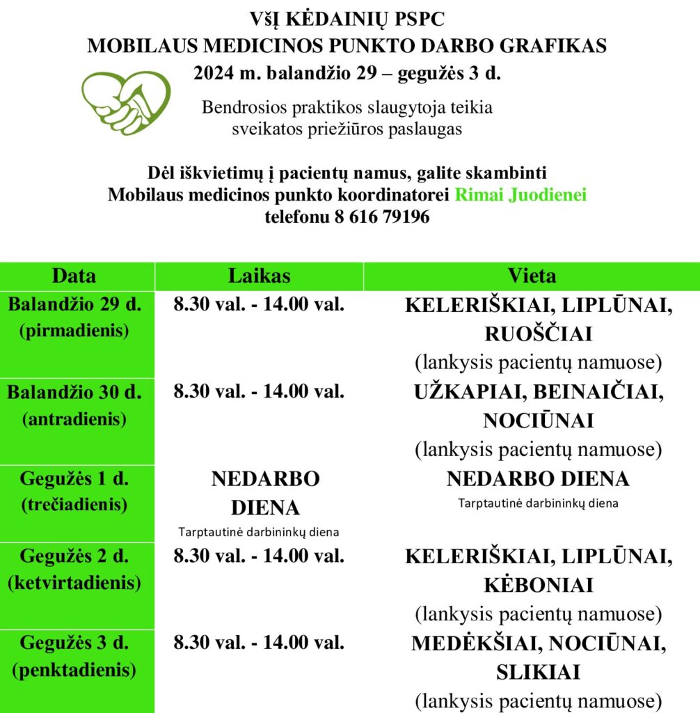 Mobilus medicinos punktas pas rajono gyventojus važiuos