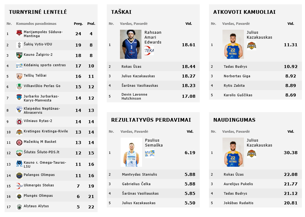 Kėdainiečių lyderis Rokas Ūzas surengė dar vieną benefisą. Puolėjo sąskaitoje per 30,5 minutės buvo 20 taškų (8/8 dvit., 1/5 trit., 1/2 baud.), 14 atšokusių ir 1 perimtas kamuolys, 6 rezultatyvūs perdavimai, klaida bei 37 naudingumo balai.