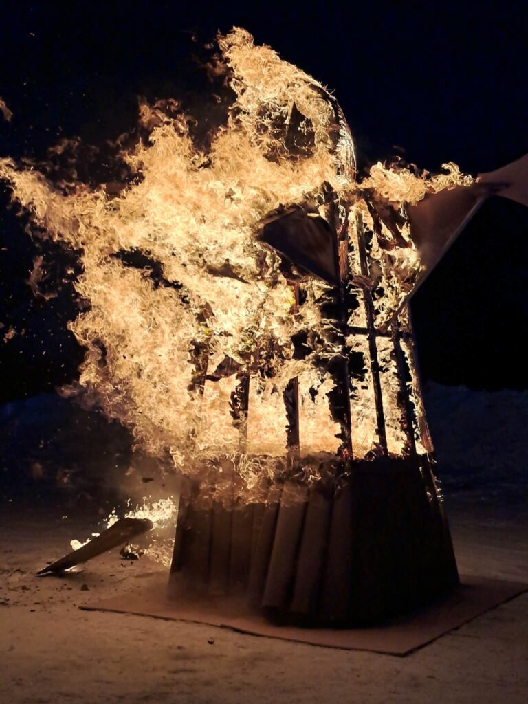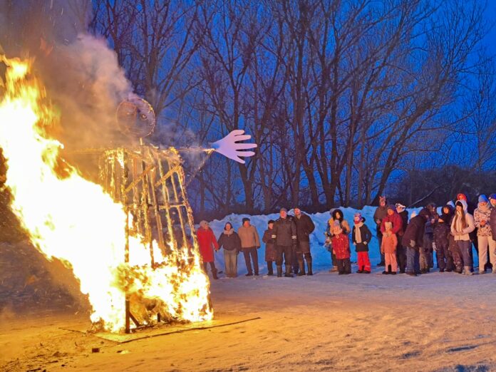 „Čiūčela simbolizuoja žiemą – sudeginame ją ugnimi ir šiluma, todėl ir tikimės tos šilumos bei ateinančio pavasario“, – sakė G. Baltrušaitė.