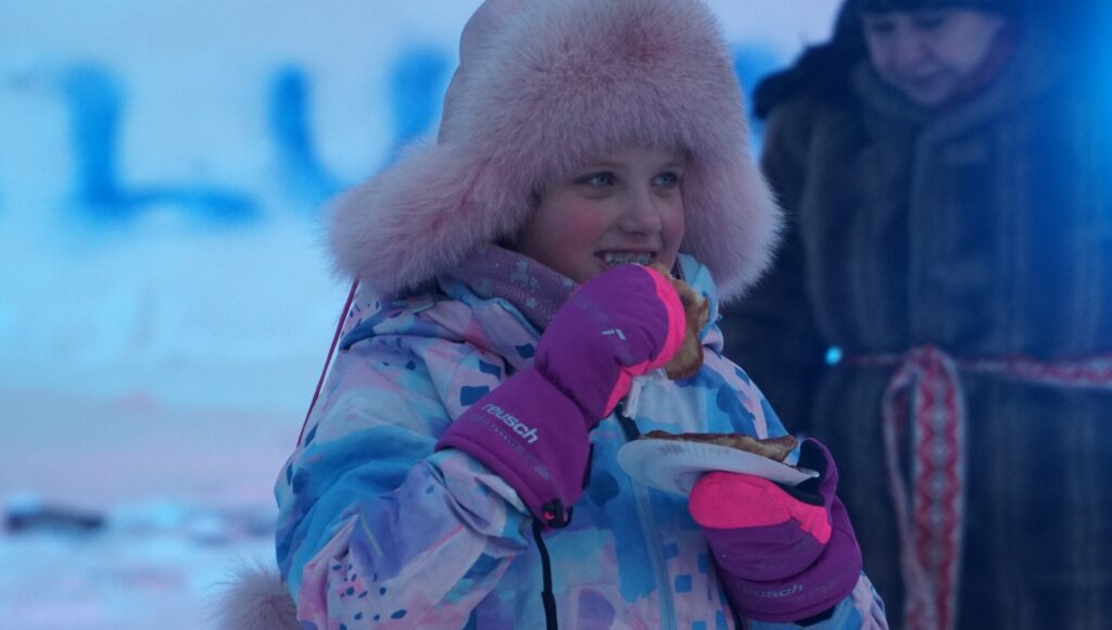 Aštuonerių metų dukrelė Emilė buvo pasislėpusi po pačios pasigaminta meškos kauke. Mergaitė prisipažino, kad norėtų, jog žiema greičiau išeitų, nes jai šalta, nors su rogutėmis šiemet spėjo ne kartą pasivažinėti.